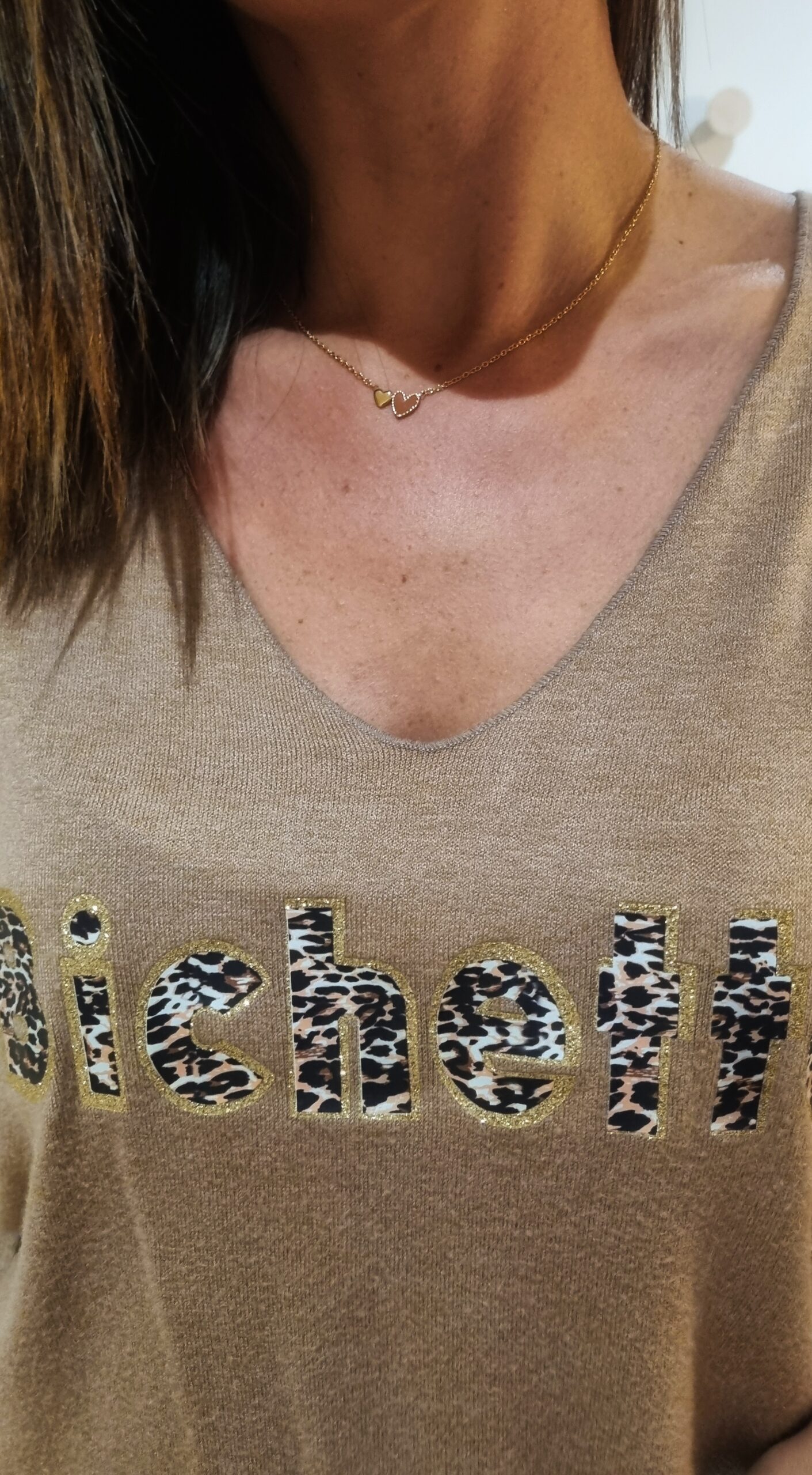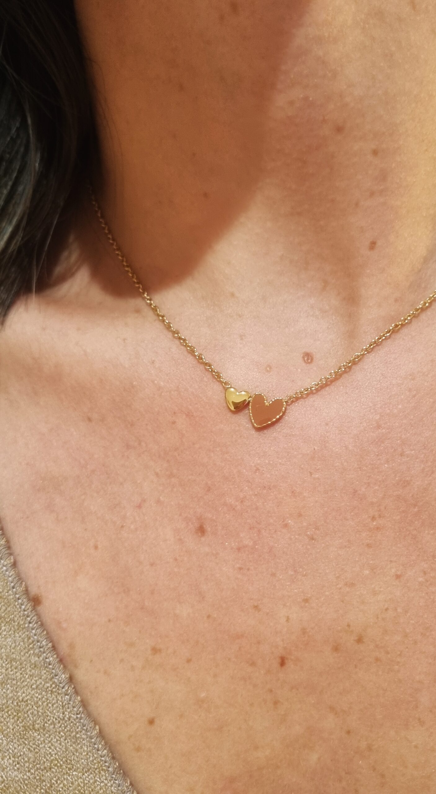 Collier double cœurs, marron et or