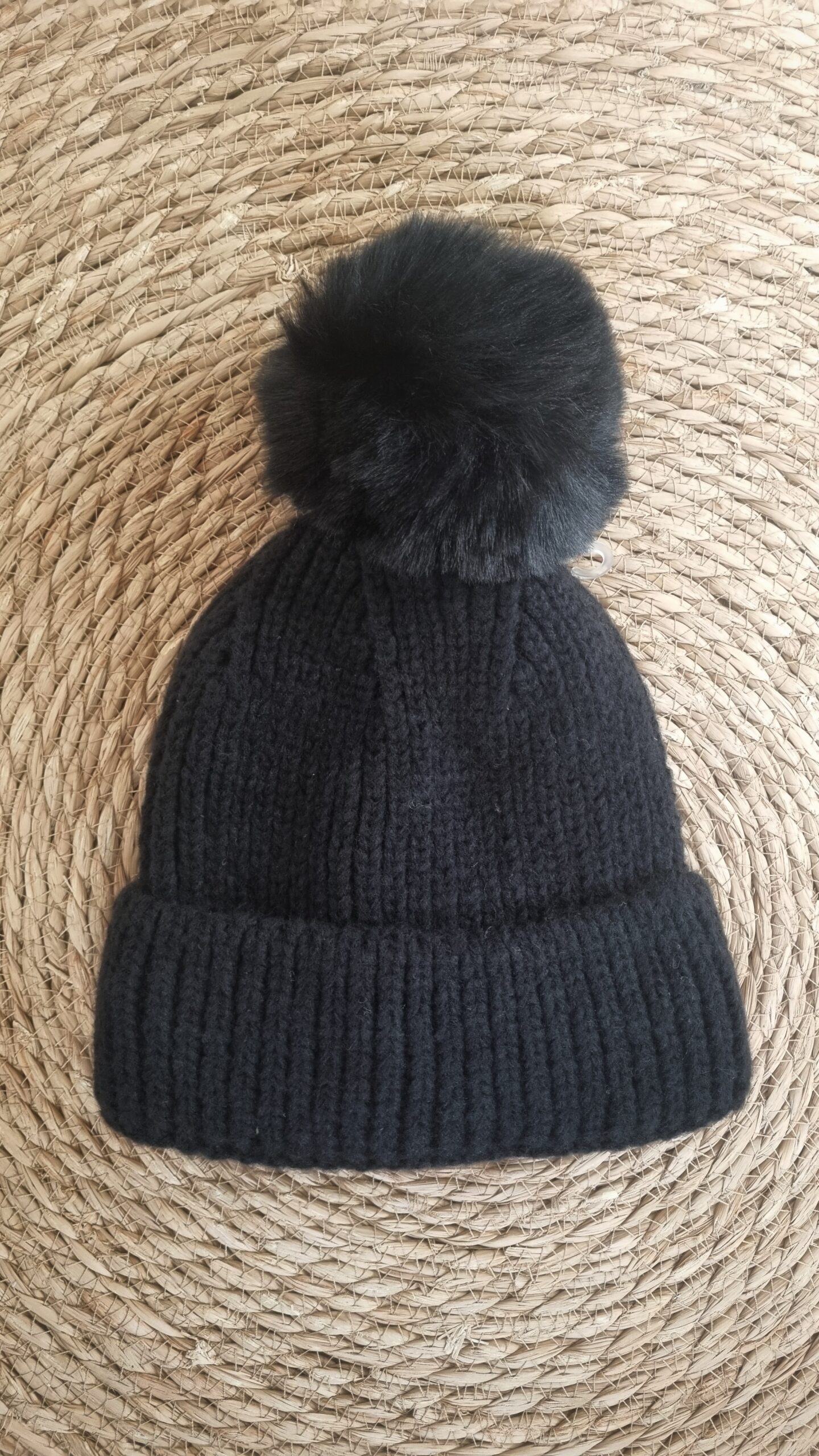 Bonnet en maille et pompon