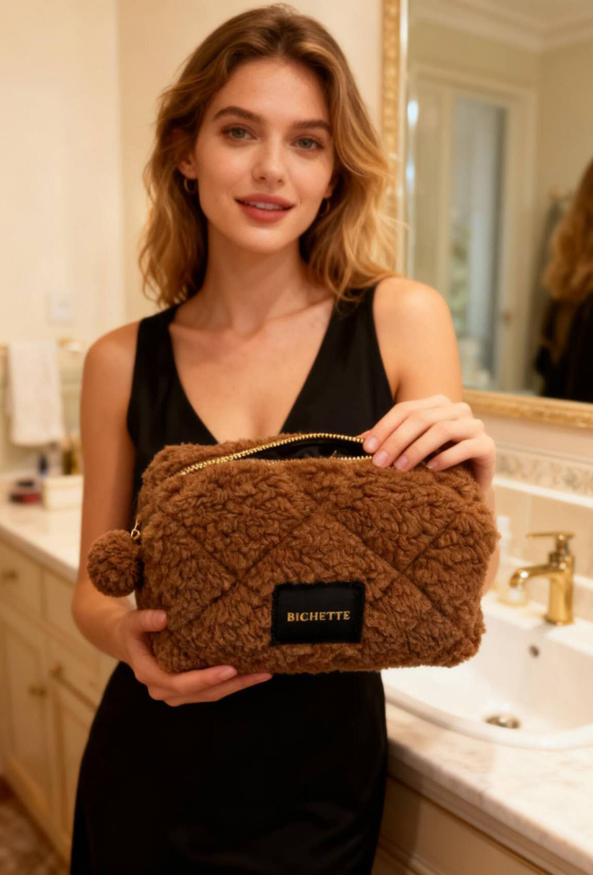 Douce et pratique, cette grande trousse en fausse fourrure est parfaite pour tout emporter avec style ! Fermée par un zip doré et une tirette pompon, elle est parfaite pour glisser ton maquillage ou accessoires. Une superbe idée cadeau, pour celle que tu pourrais appeler « Bichette ».