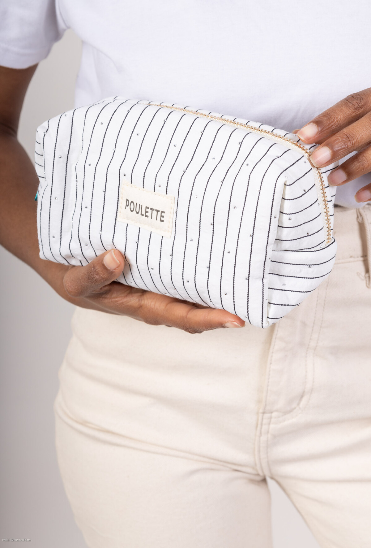Grande trousse zippée « Poulette », rayures et strass