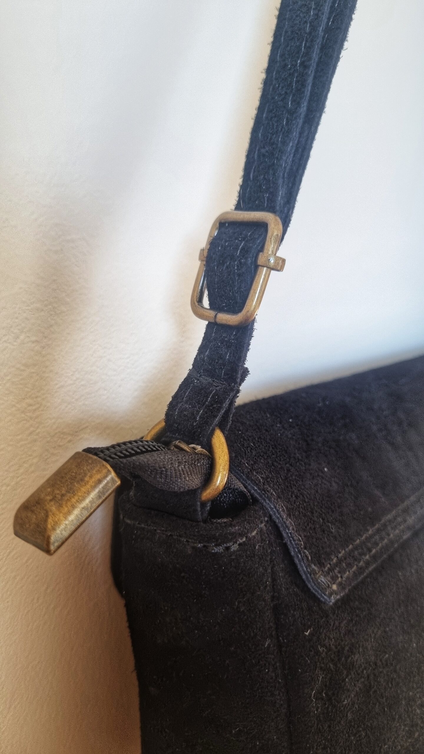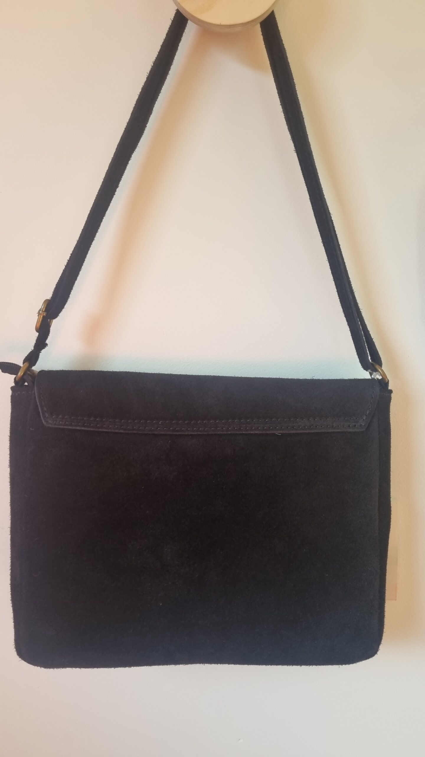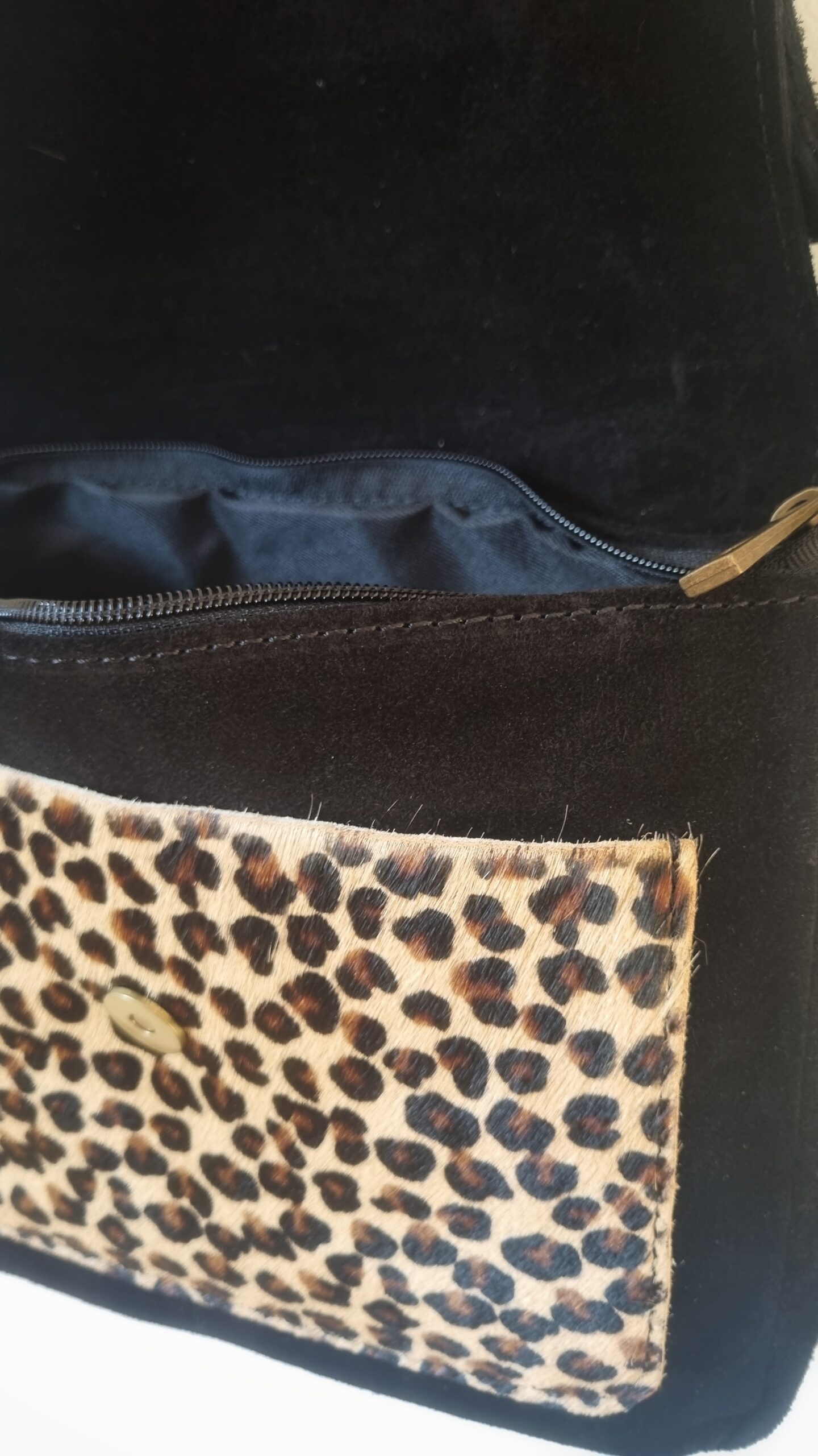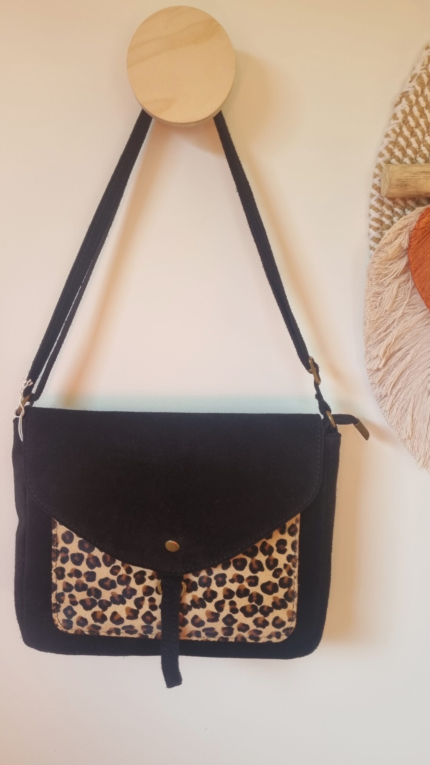 🌸 Sac « Wilson » – Cuir Suédé Noir & Rabat Léopard