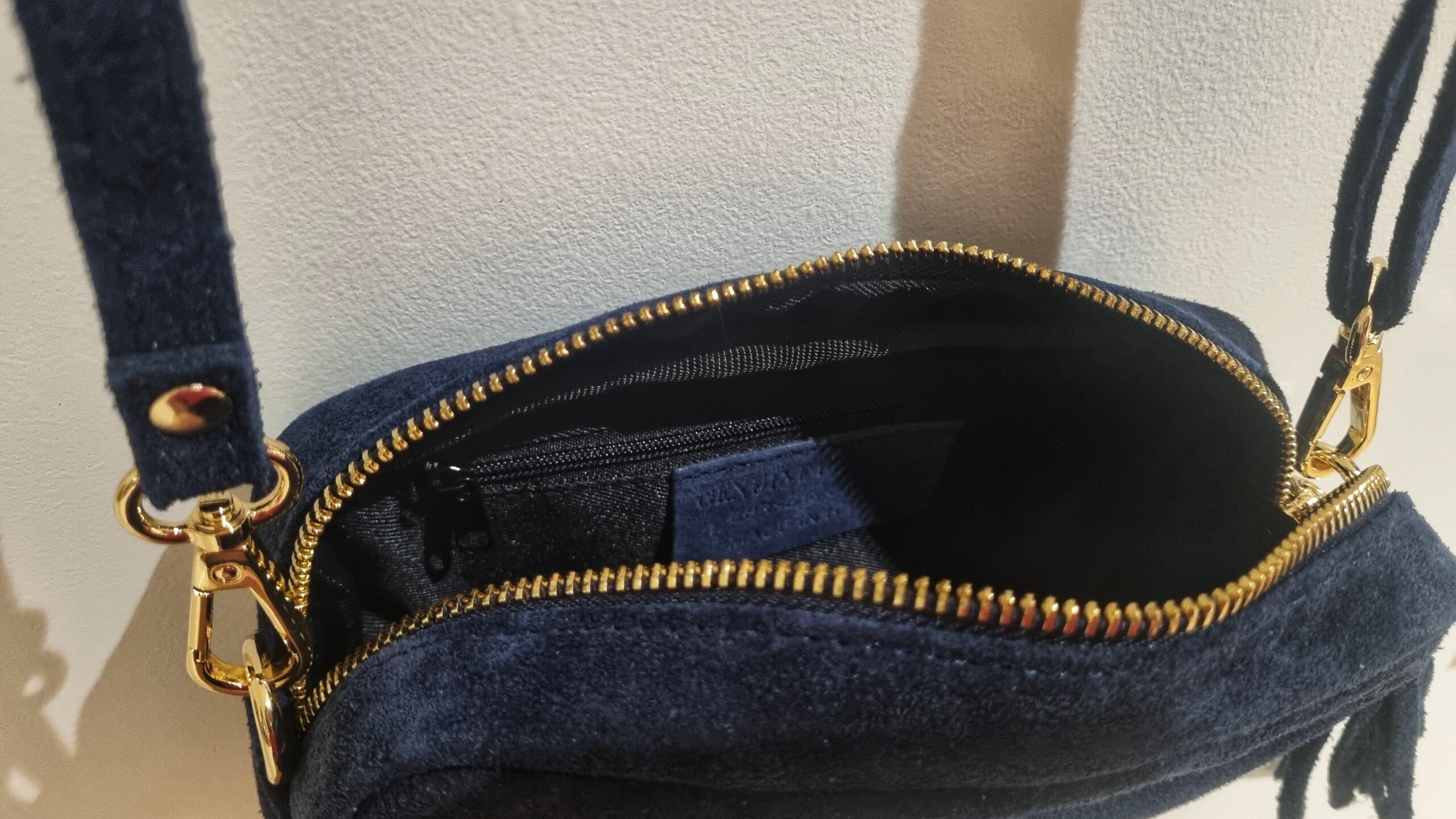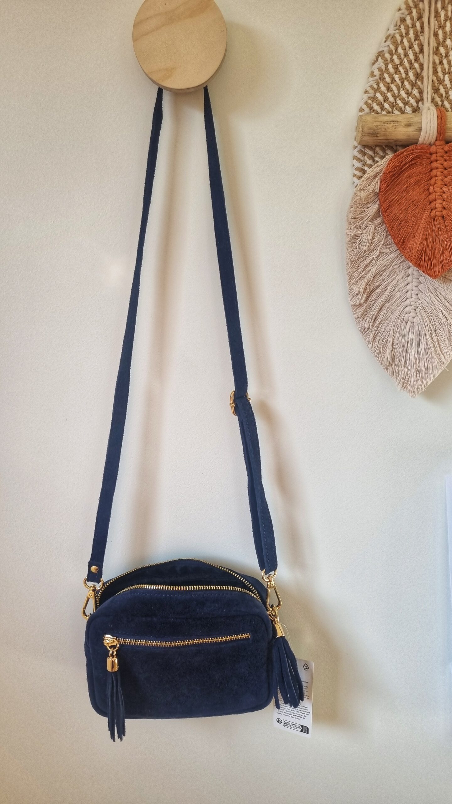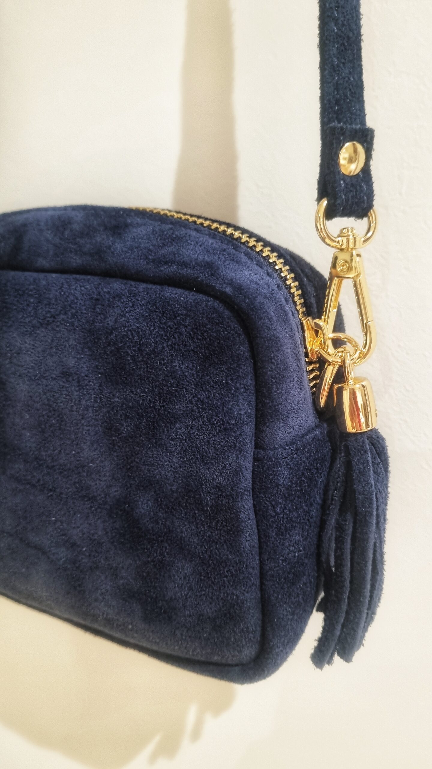 🌸 Sac « Orso » – Cuir Suédé – Bleu marine