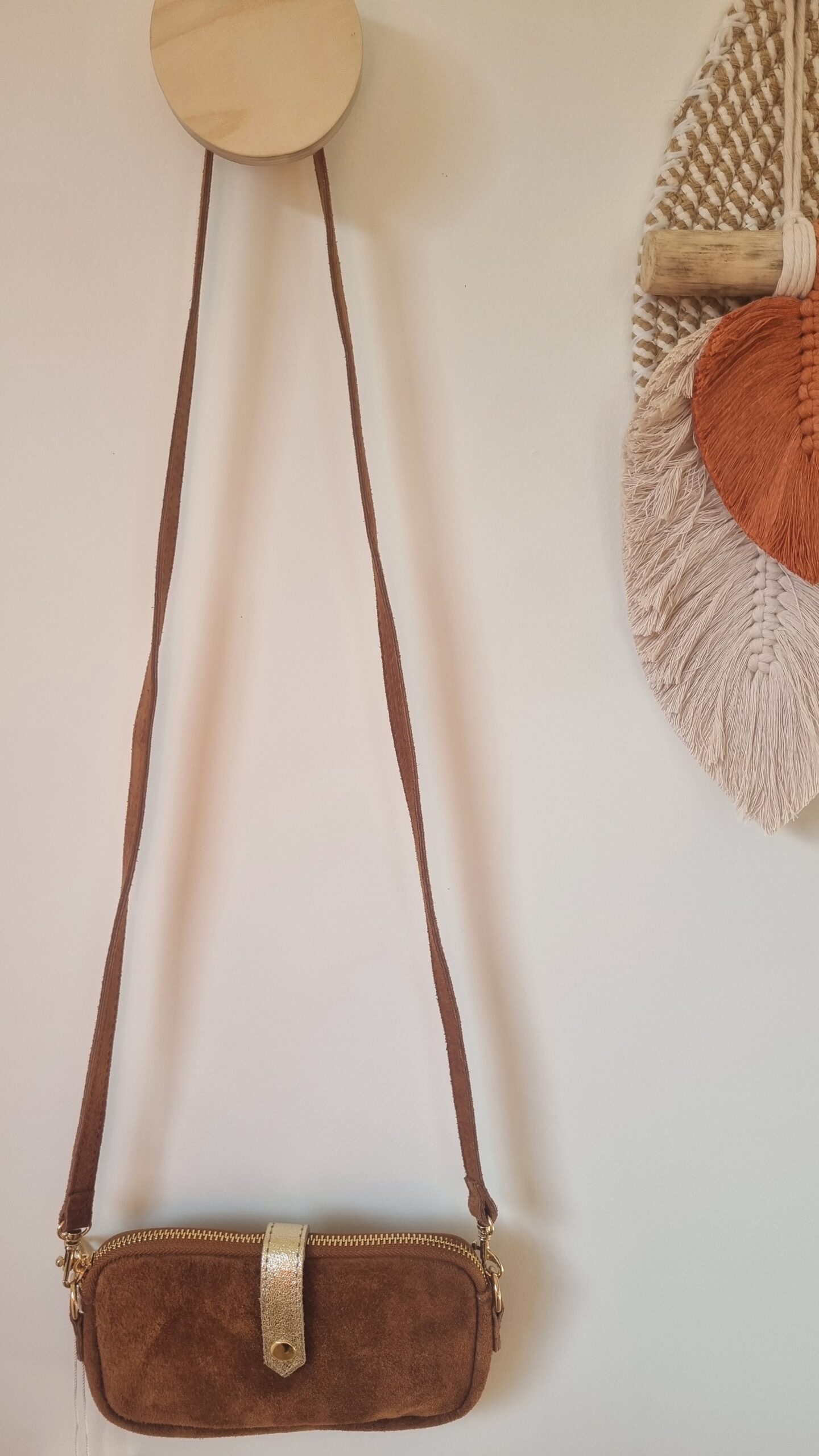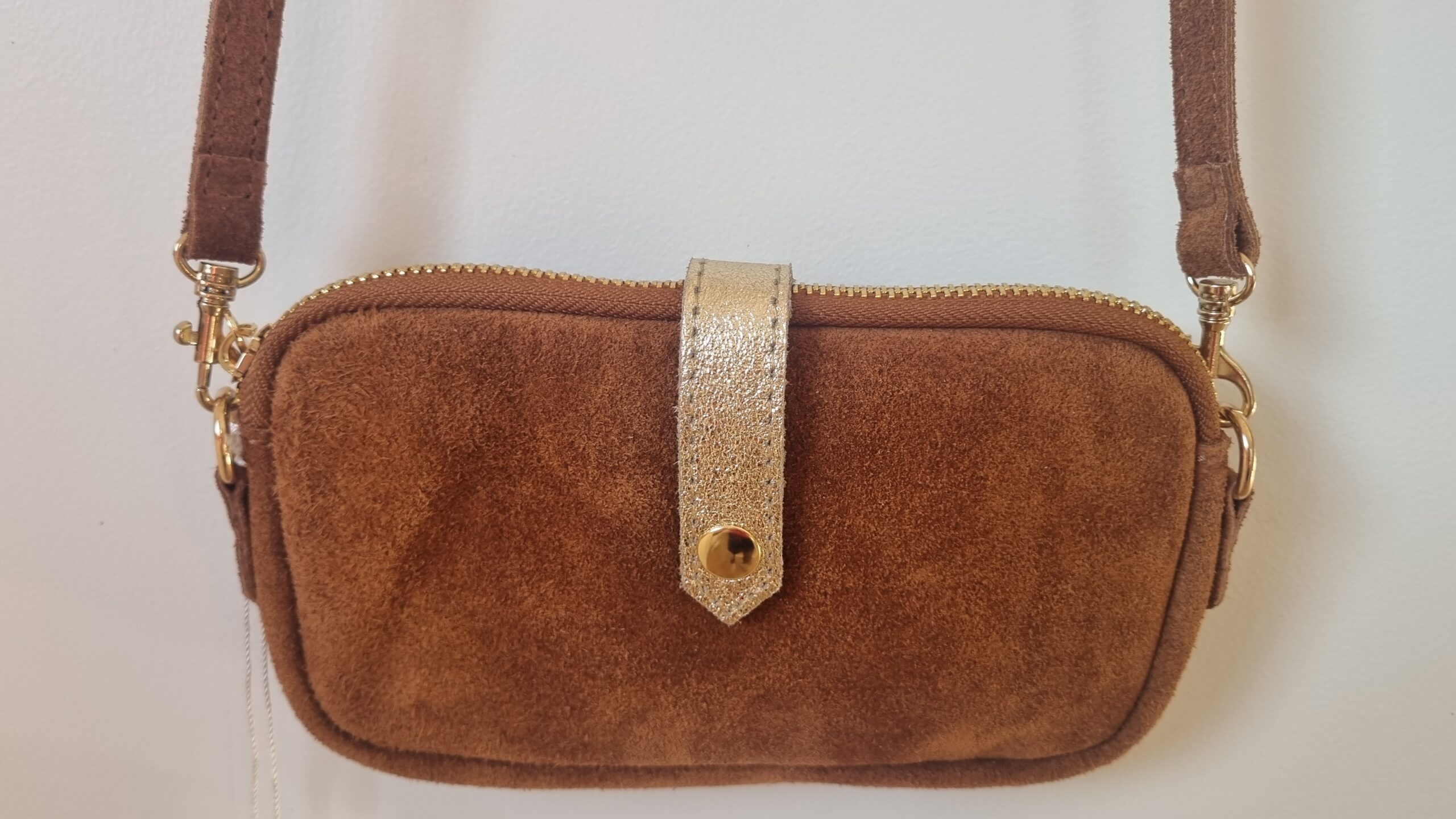🌸 Sac « Sera » – Cuir Suédé Camel