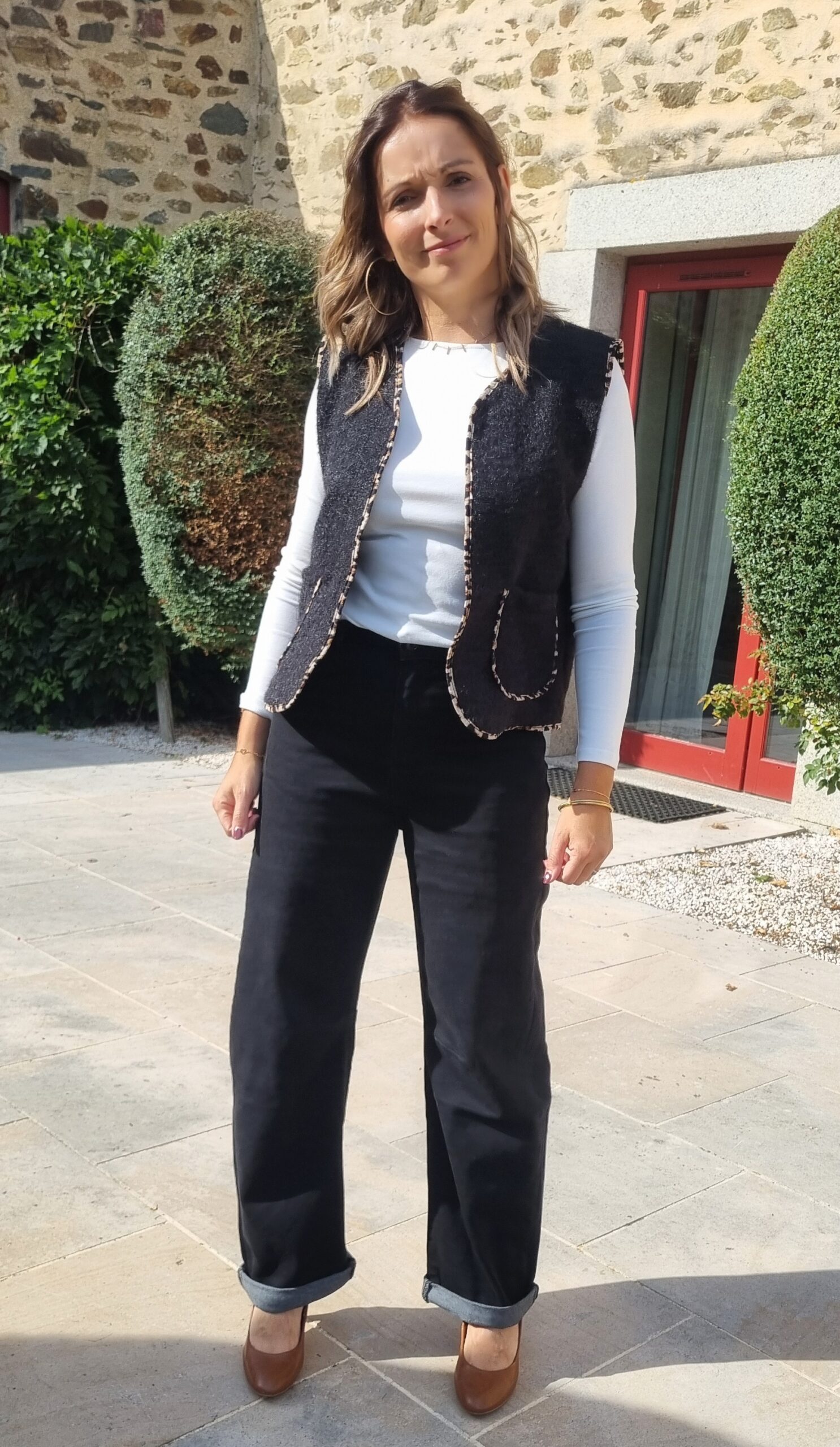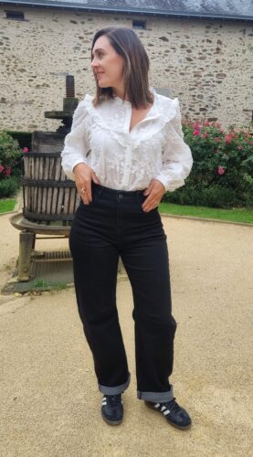 Laëtitia mesure 1,66m et Virginie mesure 1,69m ; elles le portent en taille 38.
