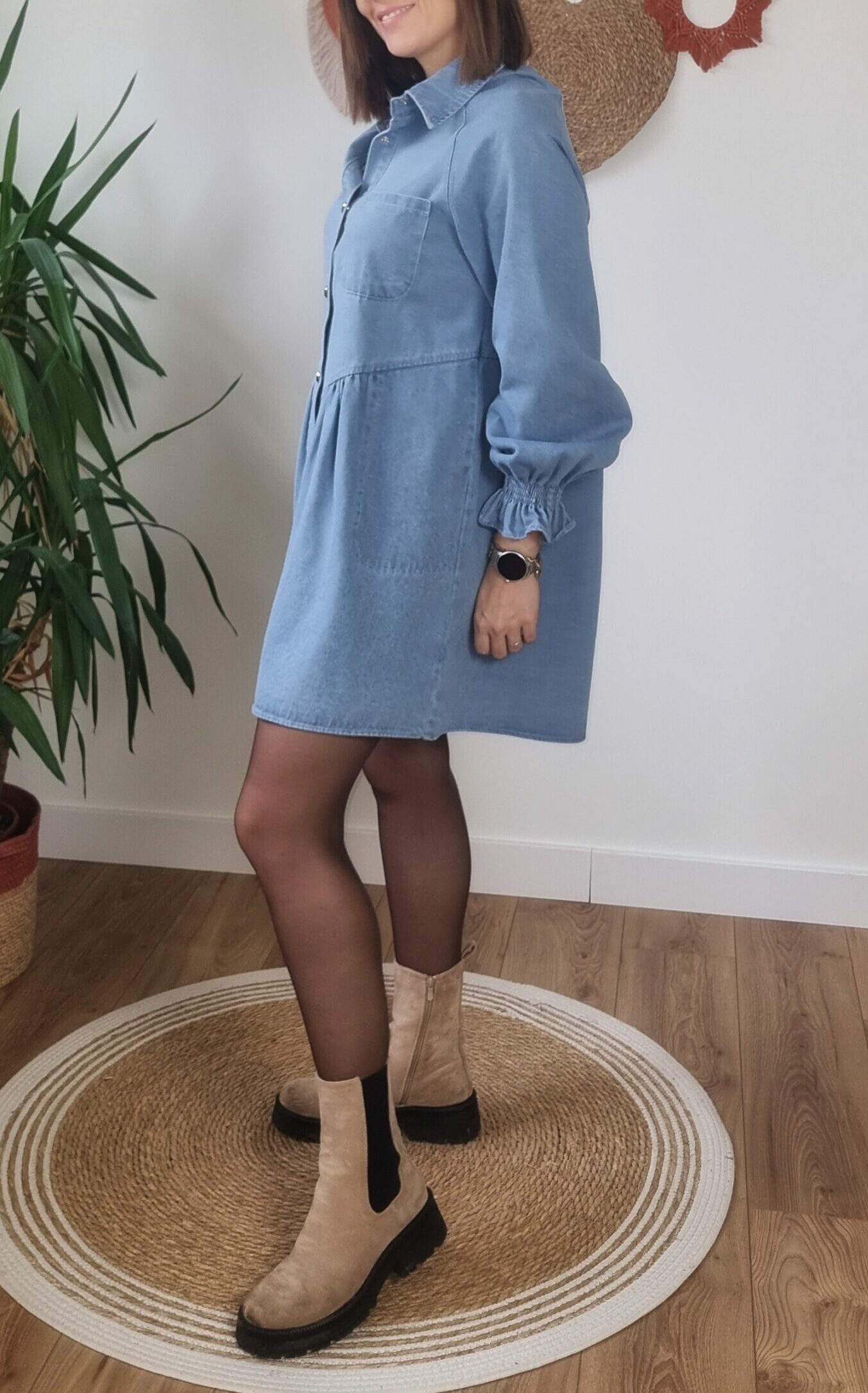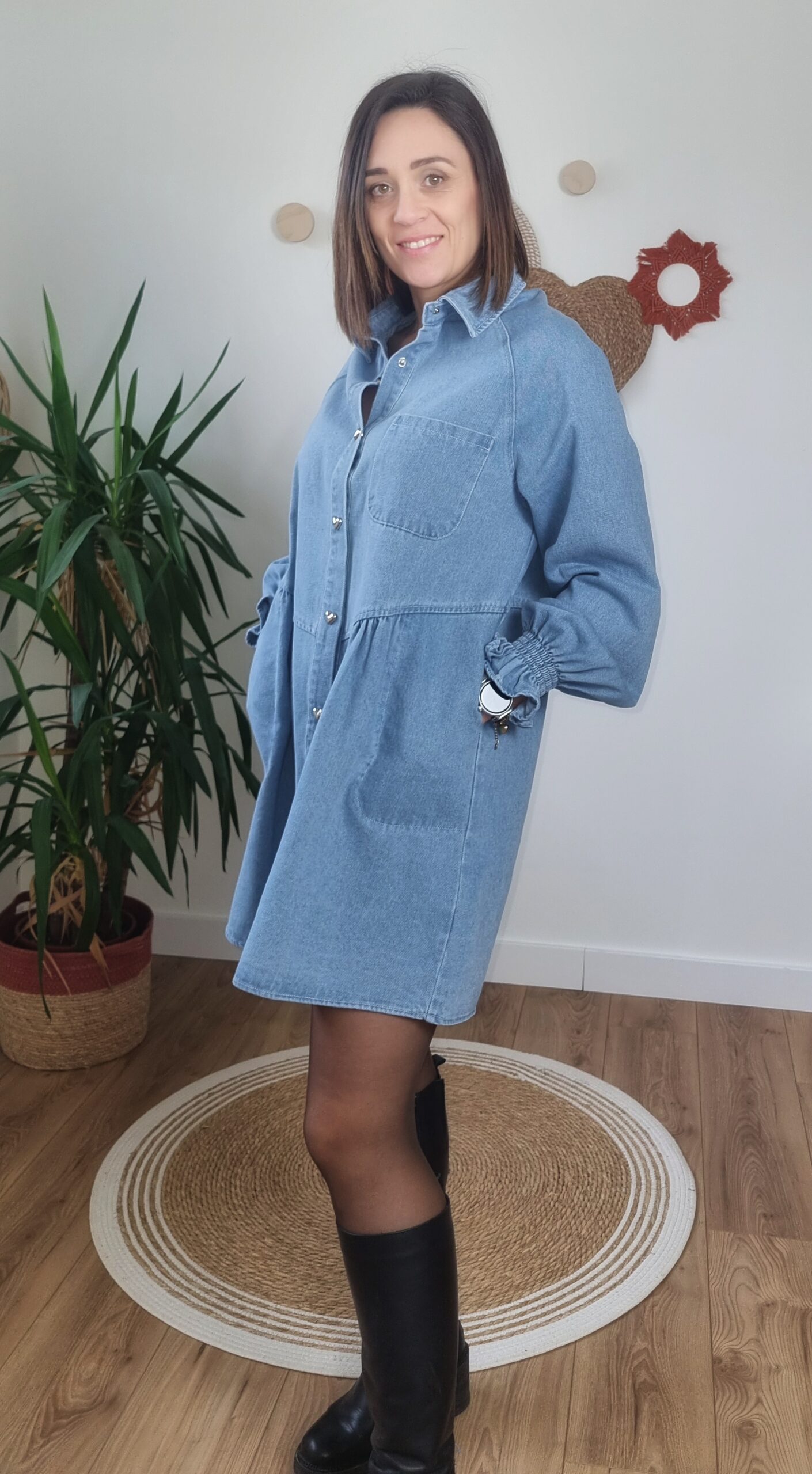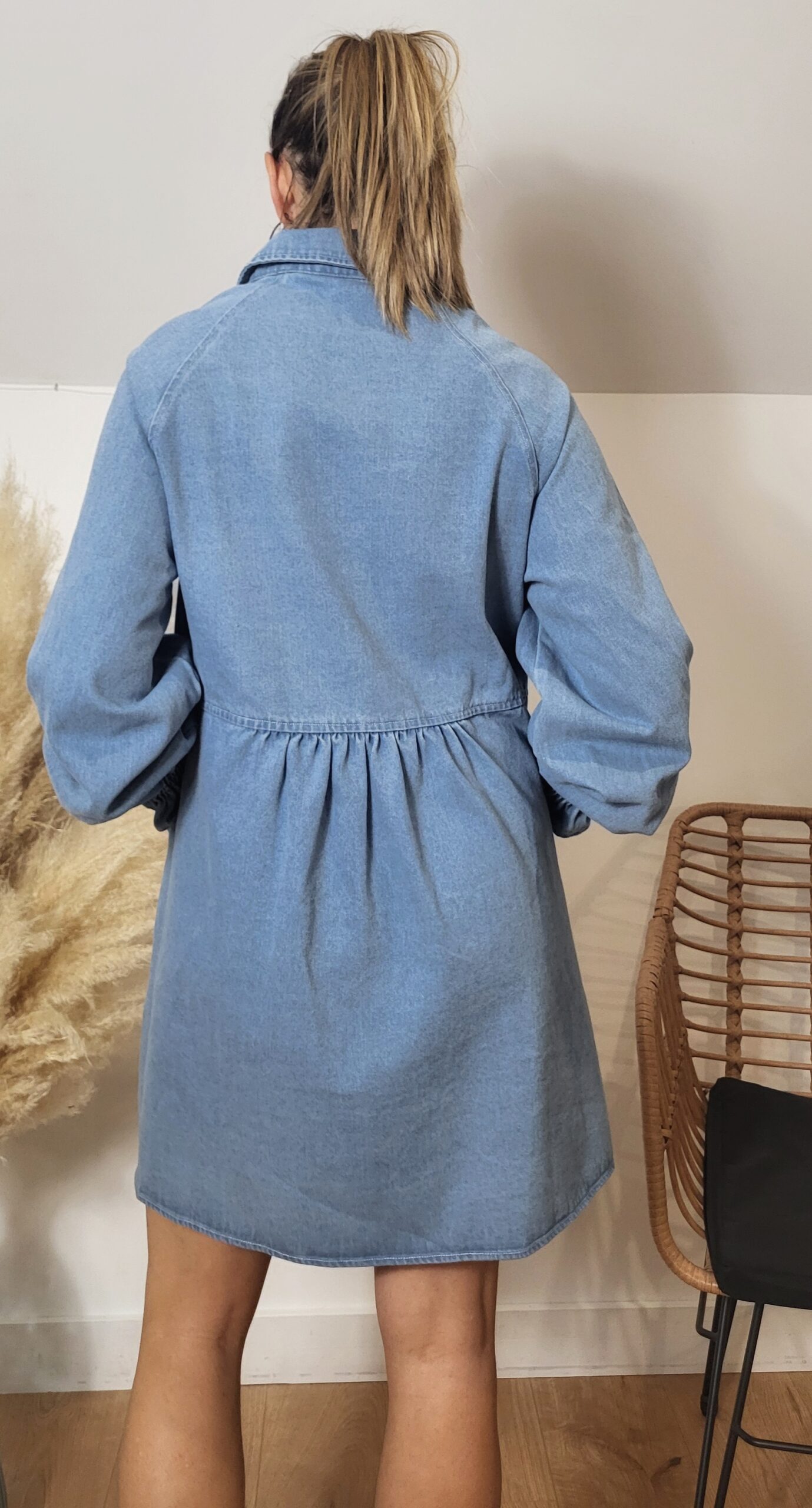 La robe est-elle extensible ? Non, le denim ne contient pas d’élasthanne mais la coupe fluide assure un bon confort.