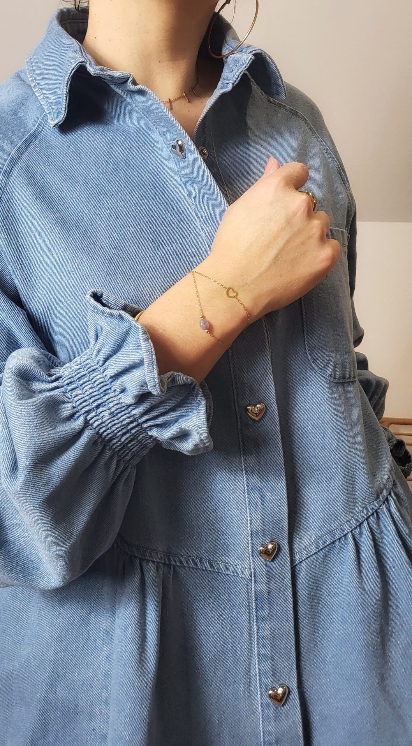 Boutons cœur métalliques qui apportent une touche originale et féminine.