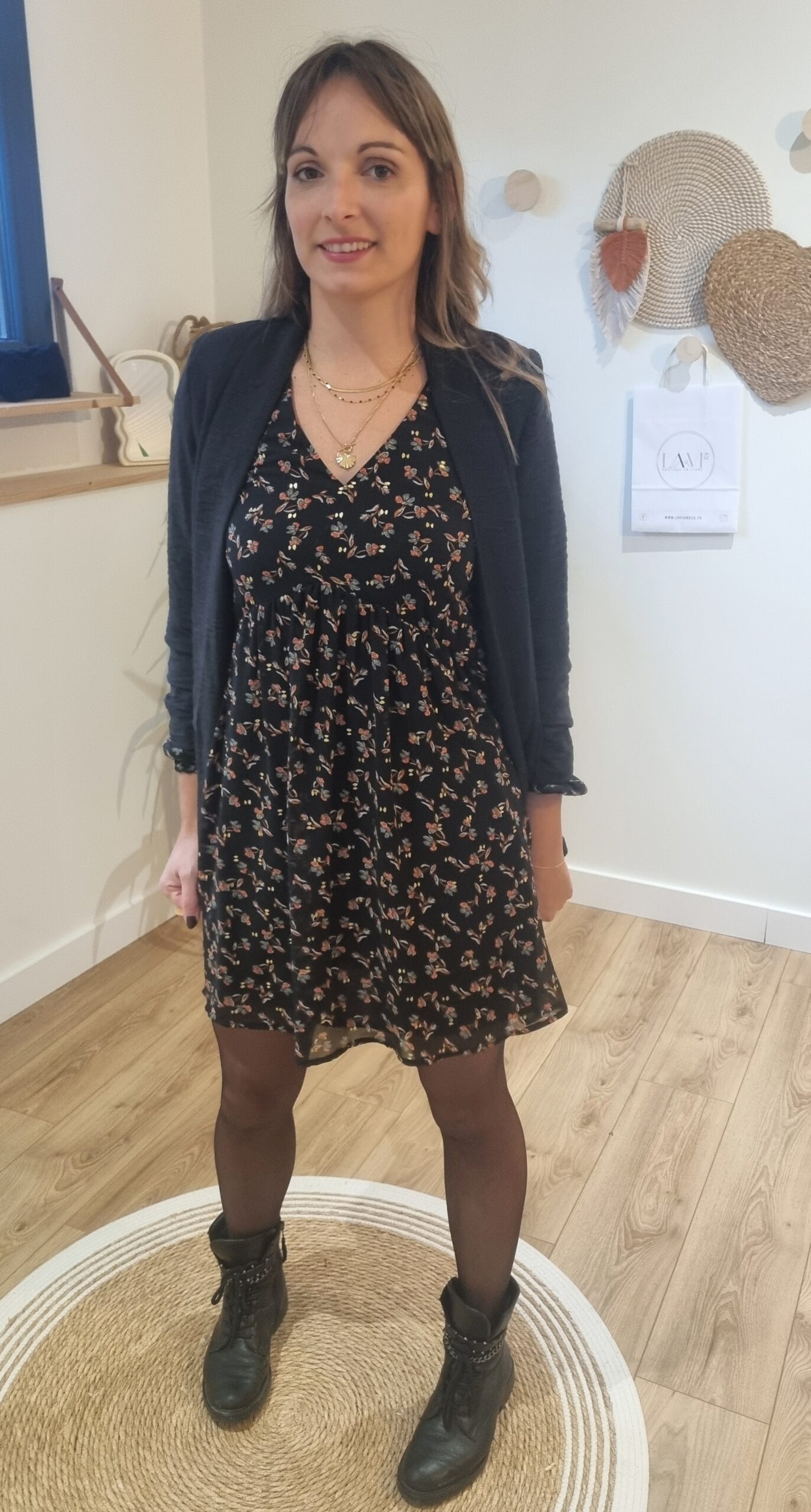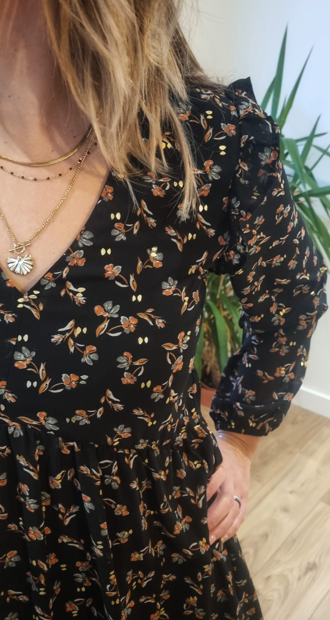 Découvrez la robe patineuse fleurie noire, une pièce incontournable pour sublimer naturellement votre silhouette.