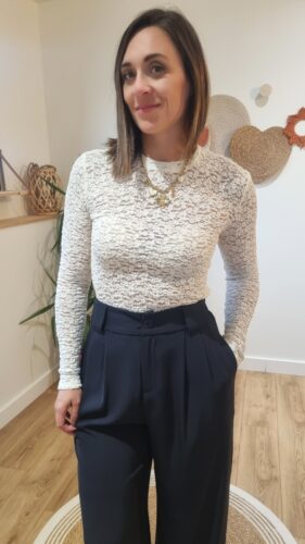 Léger et féminin, ce top en dentelle florale semi-transparent, révèle toute votre élégance. Idéal en superposition pour un look chic, ou porté seul pour une touche plus sexy.